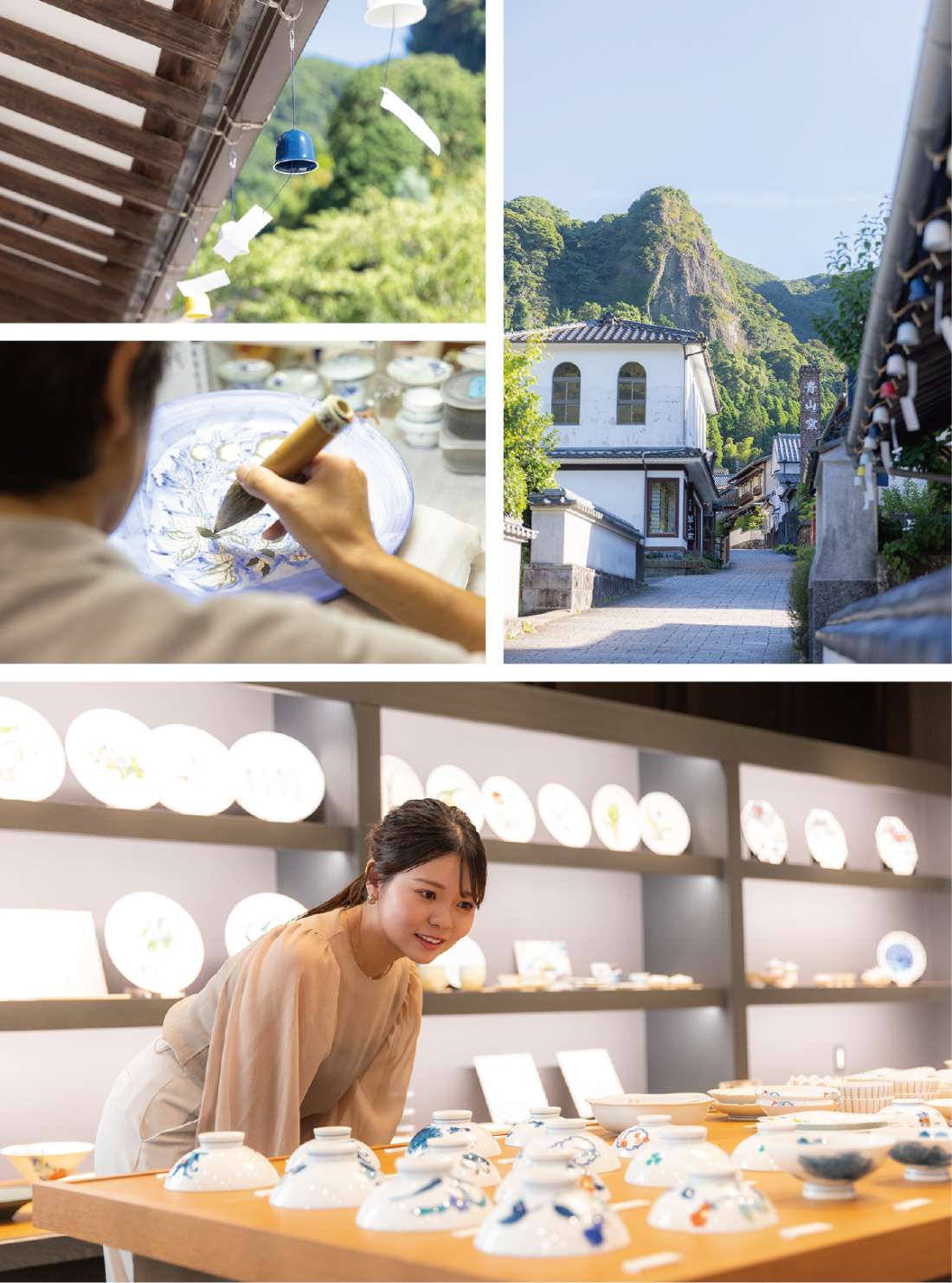 伊万里の魅力を知るには、実際に足を運ぶのが一番! 350年に渡って受け継がれてきた『鍋島焼』や、恵まれた大地と海が育んだ多彩な食材、それを使った料理などをぜひ、豊かな伊万里の自然とともに五感で堪能しよう。
