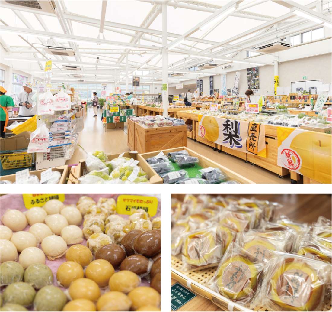 2025年3月にリニューアルオープン。梨やぶどうなど季節の果物をはじめ、野菜や鮮魚、地元のお菓子が勢揃い。伊万里牛の加工・販売も行い、不定期で特売会も。売上No.1の「ふるさと村自慢の手作り饅頭」(1個90円)や地元の老舗和菓子店『ふくや』の銘菓『ふくちゃん』(230円)もおすすめ。