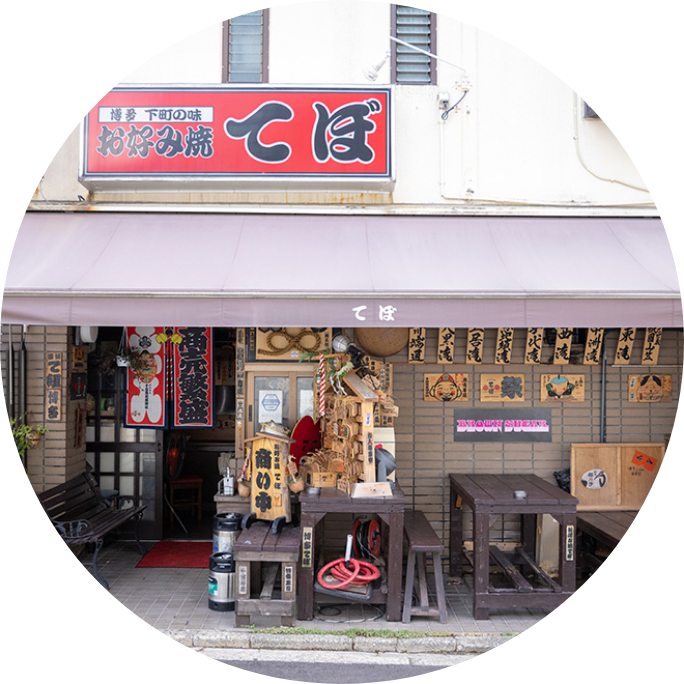 大阪風の出汁を加えて作る生地、創業時から継ぎ足して使っている特製ソースが特徴。店内には外国人ファンのメッセージ絵馬がズラリ。