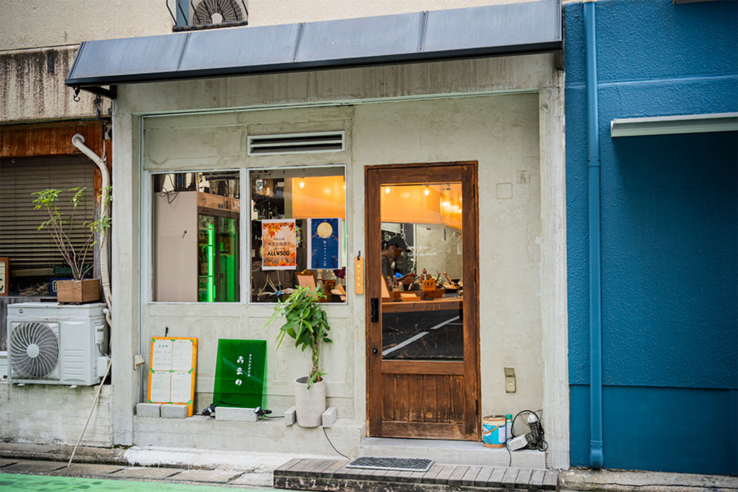 薬院にあるおしゃれな立ち飲み店。こだわりのお酒と趣向を凝らしたアテを楽しめる。立ち飲み以上、居酒屋未満の気軽な店だ。
